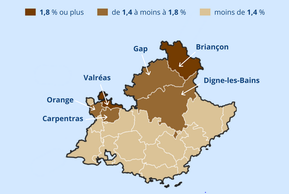La filière forêt-bois est particulièrement présente dans les communes rurales et dans le nord de la région, notamment dans les zones d’emploi de Briançon et de Valréas.