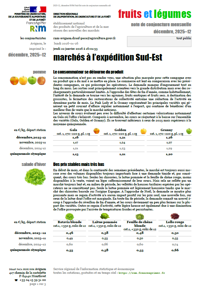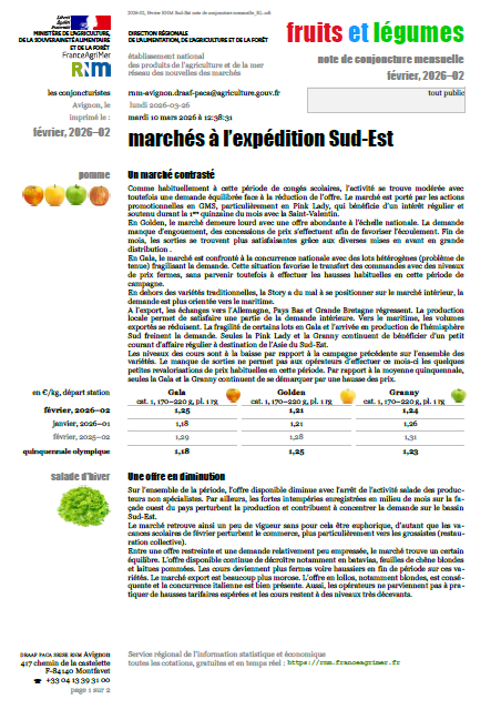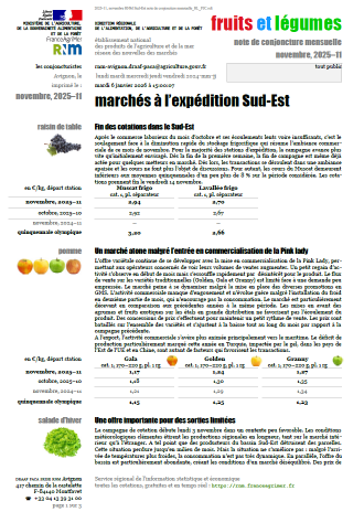 Synthèses des cours à l’expédition des fruits et légumes au départ du Sud-Est